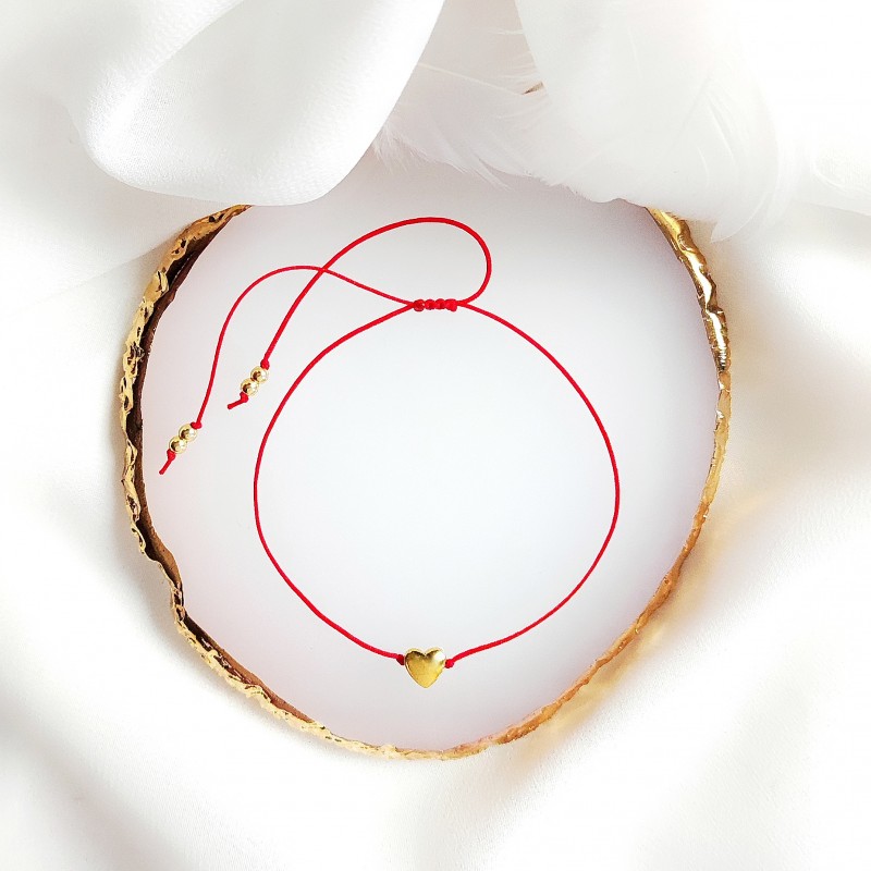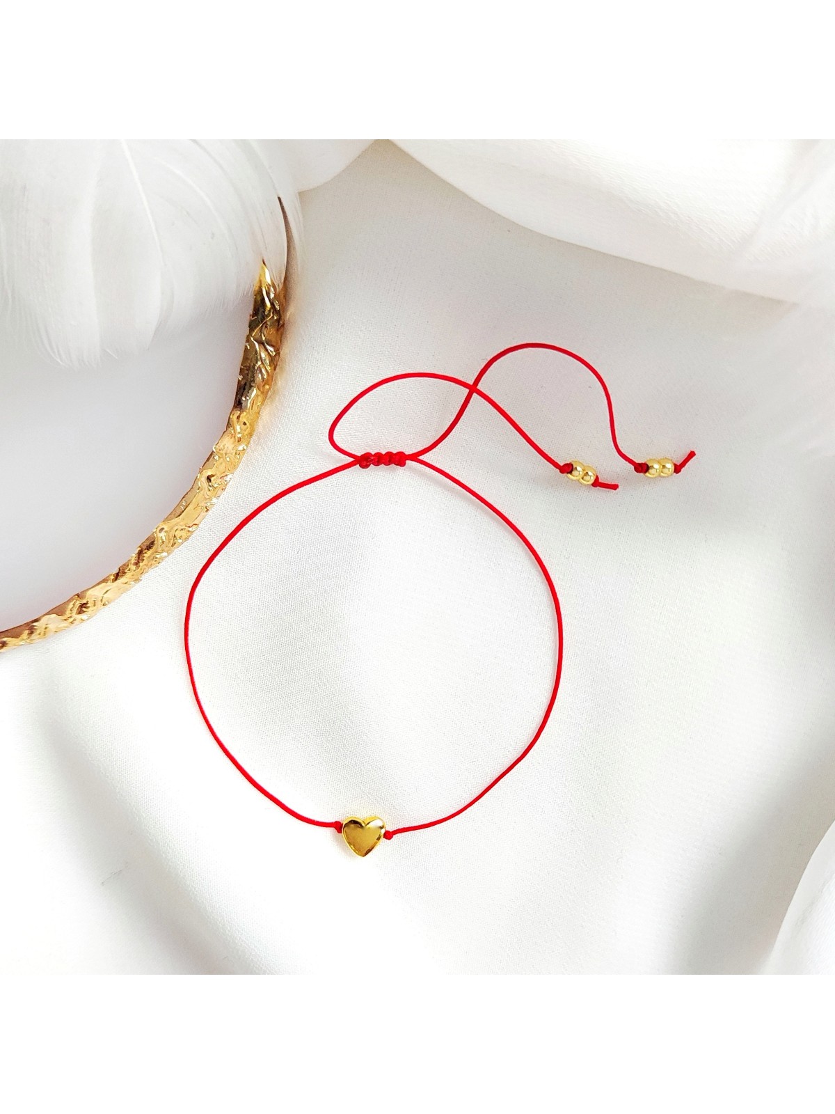 Czerwona bransoletka ze złotym serduszkiem na szczęście