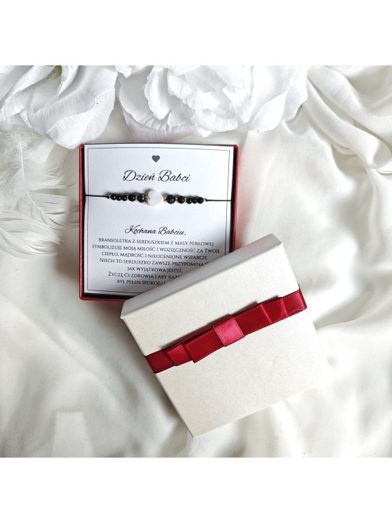 Bransoletka wykonywana jest ręcznie na zamówienie i zapakowana w pudełko z dedykacją oraz życzeniami na Dzień Babci, dzięki czemu prezent jest kompletny i gotowy do wręczenia.