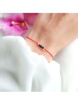 Bransoletka szczęścia na czerwonym sznurku łączy w sobie moc naturalnych kamieni: granatu, labradorytu i turmalinu.