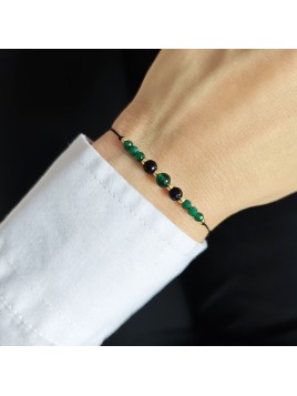 Bransoletka ozdobiona jest kamieniami naturalnymi: Szmaragd i Jadeit o głębokim zielonym odcieniu oraz Czarny Onyks.
