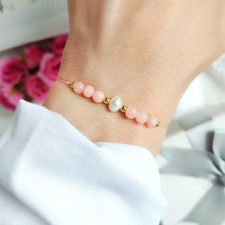 Jadeit o subtelnym różowym odcieniu łączy się tu z perłą – symbolem czystości i kobiecej energii.