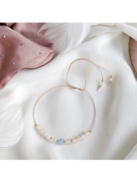 Bransoletka z akwamarynem, kwarcem różowym i agatem to propozycja dla osób, które chcą nosić biżuterię wykonaną z naturalnych kamieni o ważnej symbolice i jednocześnie cenią możliwość personalizacji.