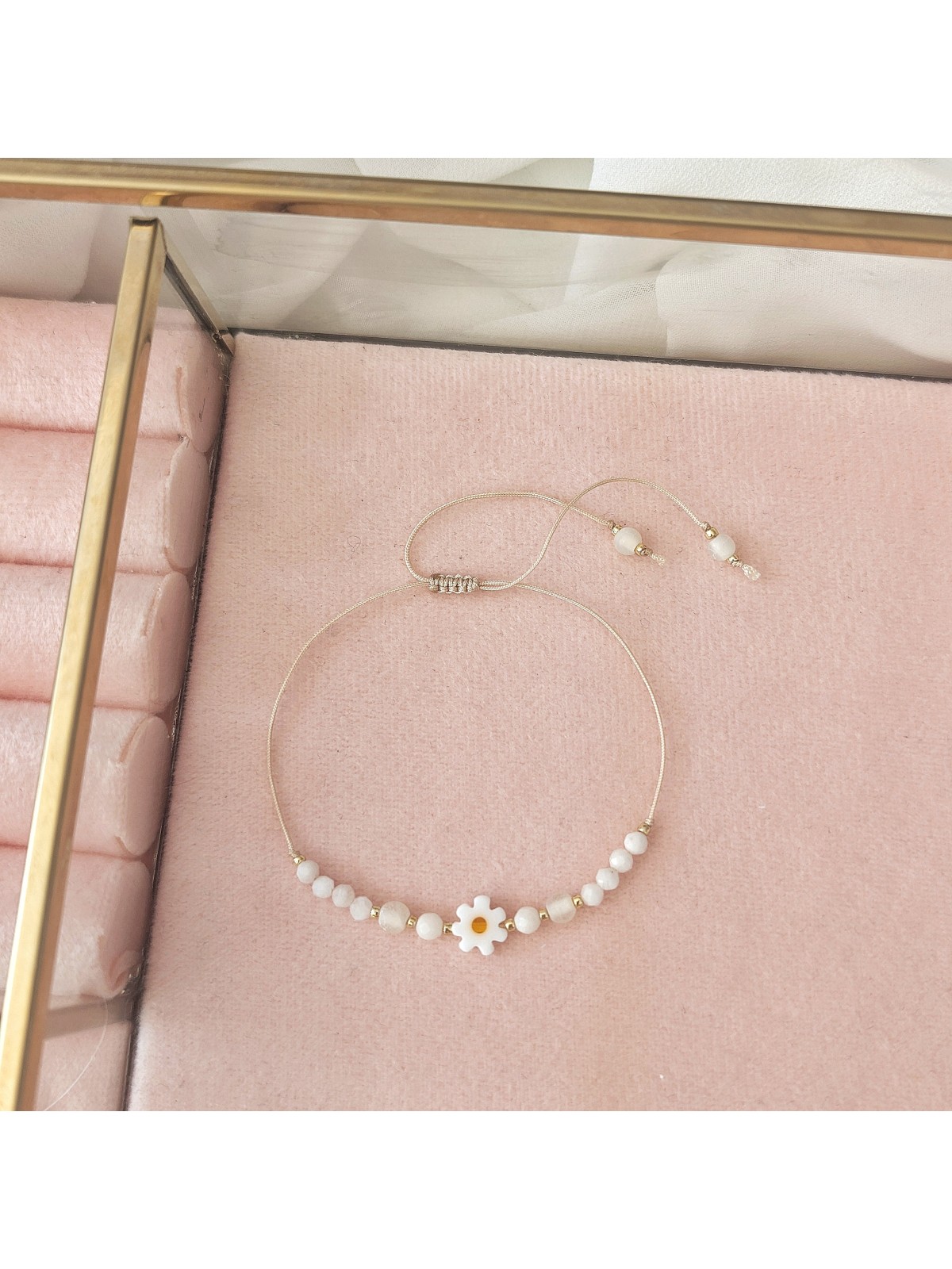 Bransoletka z kamieniami naturalnymi i z stokrotką