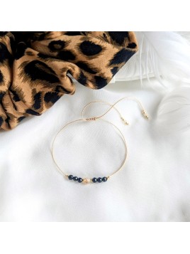 Bransoletka wykonana jest na beżowym, regulowanym sznurku z drobnymi złotymi lub srebrnymi koralikami ozdobnymi (do wyboru).