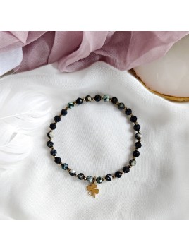 Zawieszka w kształcie czterolistnej koniczynki symbolizuje szczęście, nadzieję i pomyślność, a jej obecność czyni bransoletkę nie tylko ozdobą, ale i amuletem przyciągającym dobrą energię.