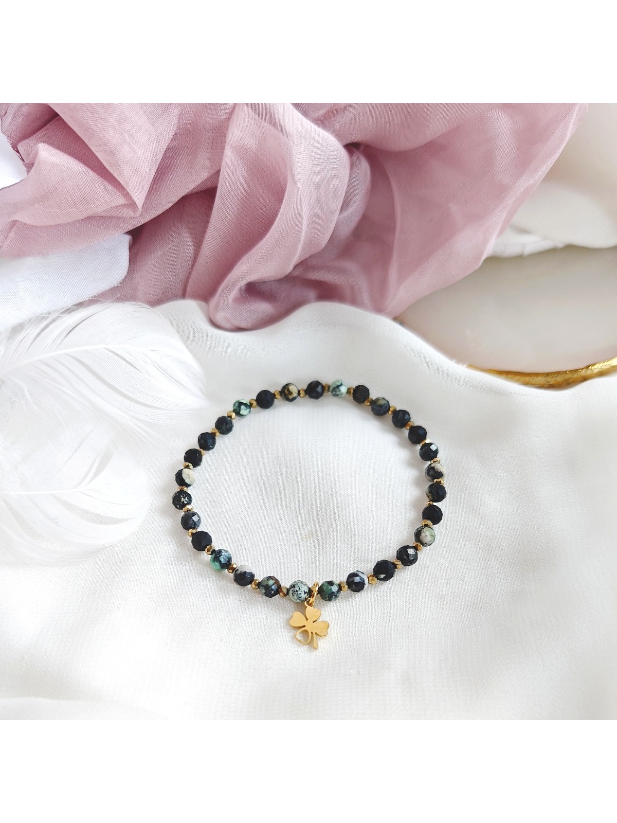 Bransoletka z turkusu afrykańskiego z czterolistną koniczynką