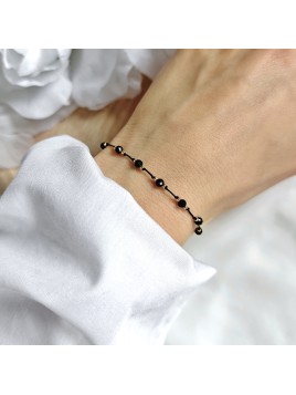 Lekki, czarny sznurek podkreśla naturalne piękno kamienia, a delikatne koraliki dodają bransoletce subtelności.