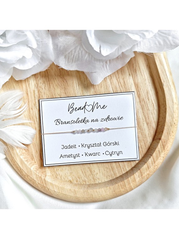 Bransoletka amulet zdrowia z kamieni naturalnych – jadeit, ametyst, cytryn, kwarc