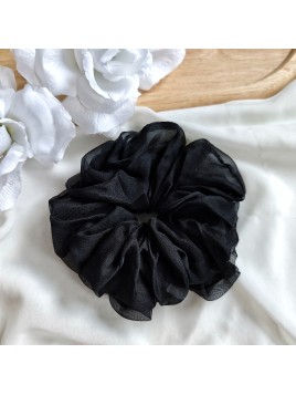 Czarna gumka frotka typu scrunchies to wyrazisty dodatek do włosów, który od razu przyciąga uwagę swoją formą i objętością.