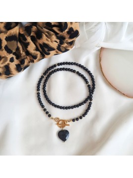 • Naszyjnik z naturalnego onyksu z serduszkiem fasetowanym