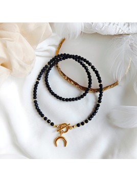 Naszyjnik z onyksu i półksiężycem łączy w sobie funkcję biżuterii i talizmanu, jest to biżuteria ochronna, którą możesz nosić codziennie.
