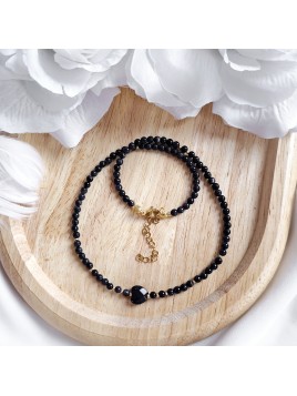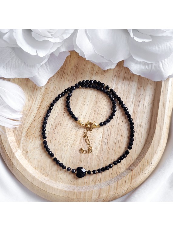 Naszyjnik z kamienia Noc Kairu z fasetowanym serduszkiem to propozycja dla osób, które lubią biżuterię o wyjątkowym charakterze.