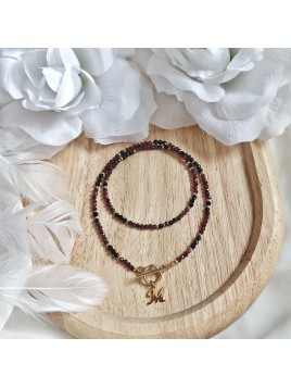 Naszyjnik z czarnego turmalinu i granatu z literką