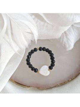 Pierścionek z serduszkiem z masy perłowej i z Onyksem