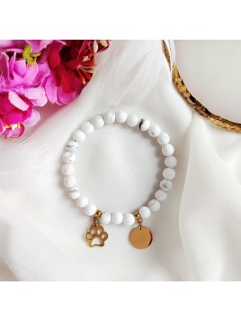 Bransoletka z howlitu z Grawerem Psia Łapa z imieniem psa