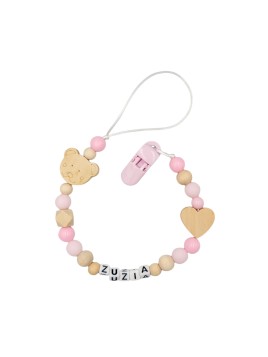 Zawieszka do smoczka z imieniem dziecka różowa beżowa lekka
