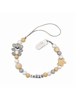 Zawieszka do smoczka z imieniem dziecka beżowy szary przywieszka